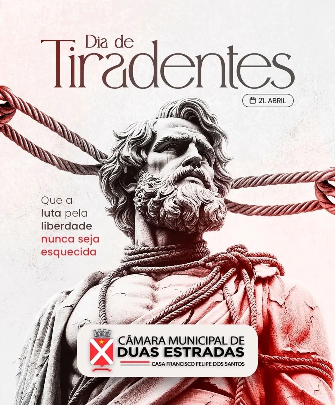 A Câmara Municipal de Duas Estradas homenageia a memória de Tiradentes, símbolo de luta por liberdade e justiça no Brasil.